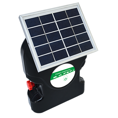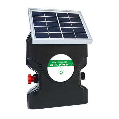 Energy efficient solar panel charges the internal battery to power the fence line.